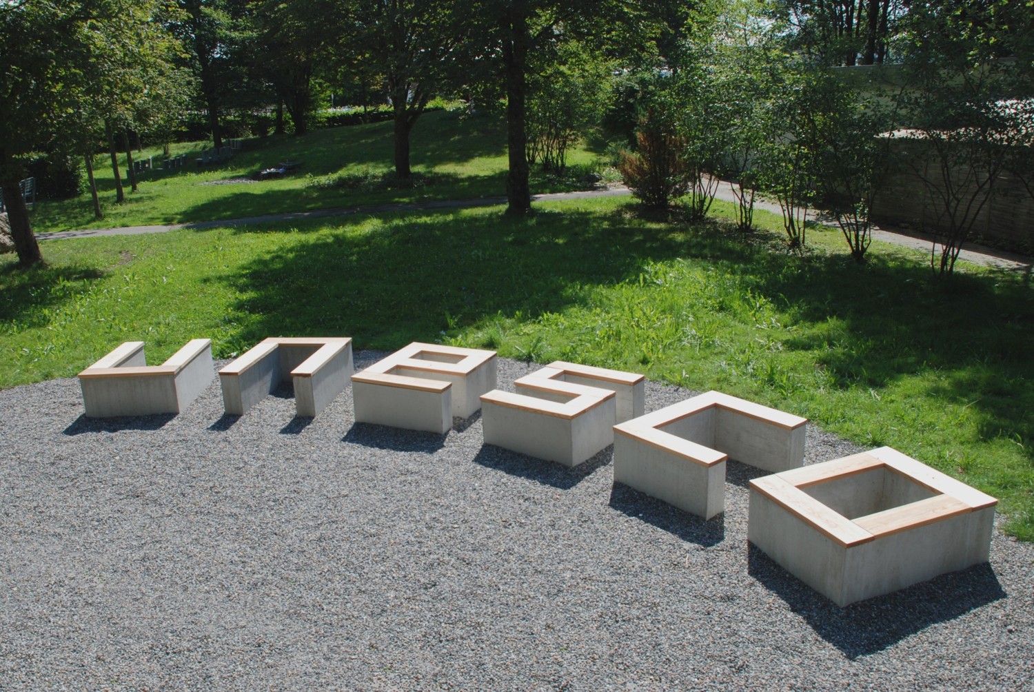Sitzgelegenheit auf dem Schulhof - Fahrt in die Welterbestätte Dachau