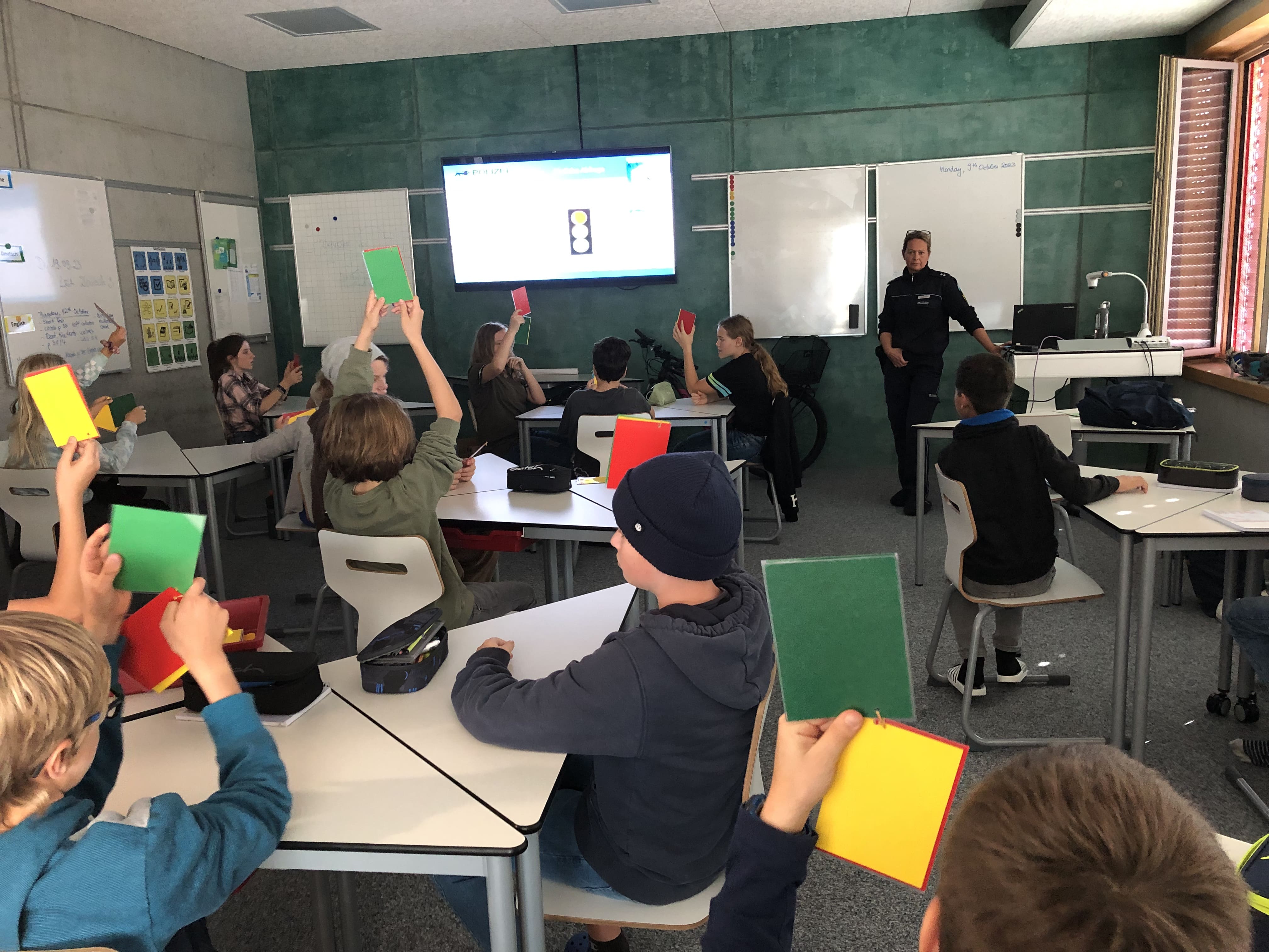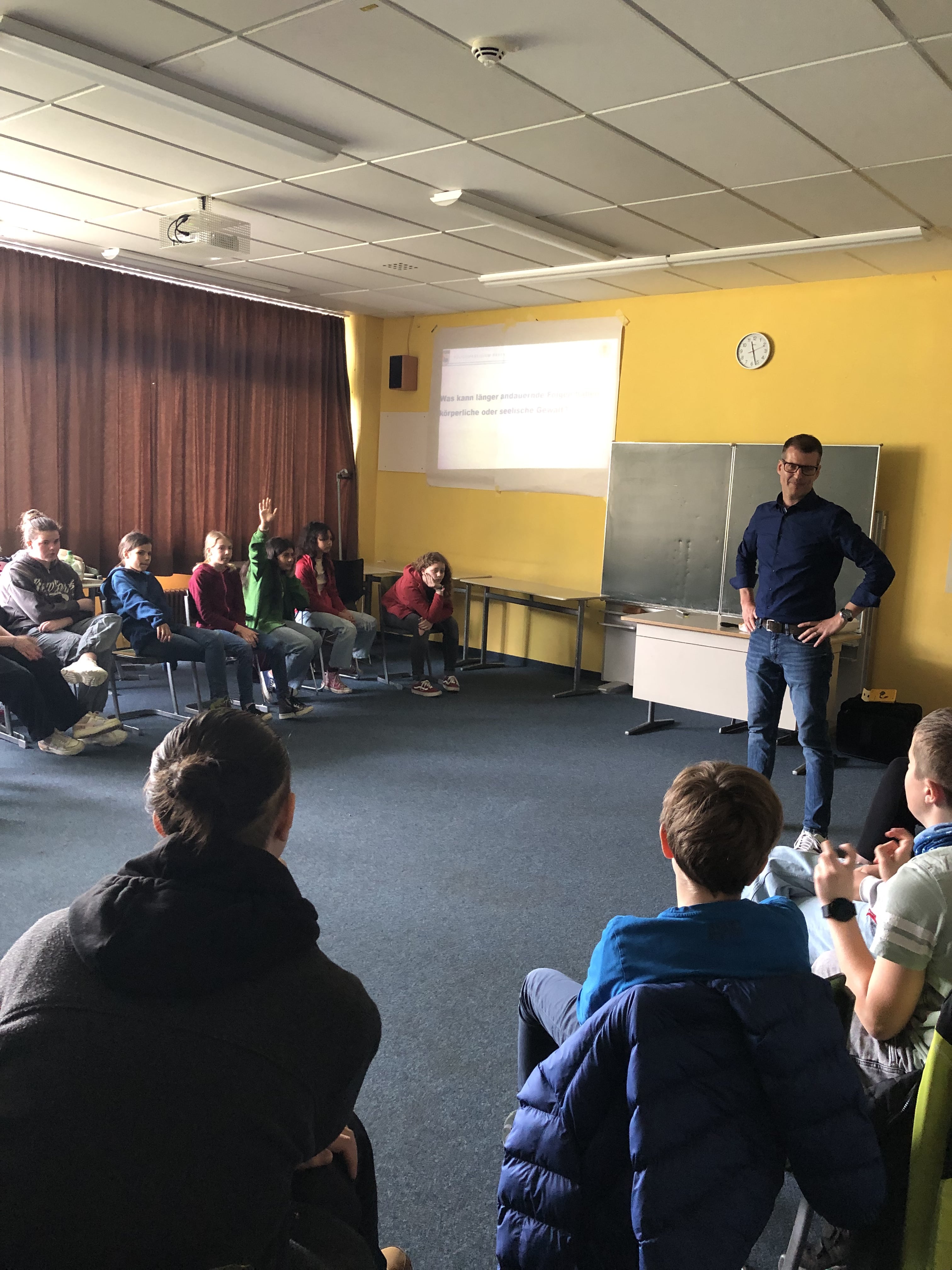 Zwischen dem 22.9 und 23.10.2023 besuchte Herr Hepp vom Polizeipräsidium Ravensburg alle vier 7. Klassen, um diese für das Thema „Gewalt“ zu sensibilisieren.