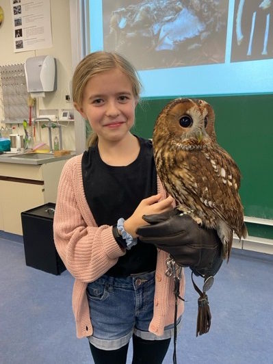Von links nach rechts: Die Eule Rosalie zu Besuch - Unsere HMG-Bienen - Fingerprint im Schülerlabor