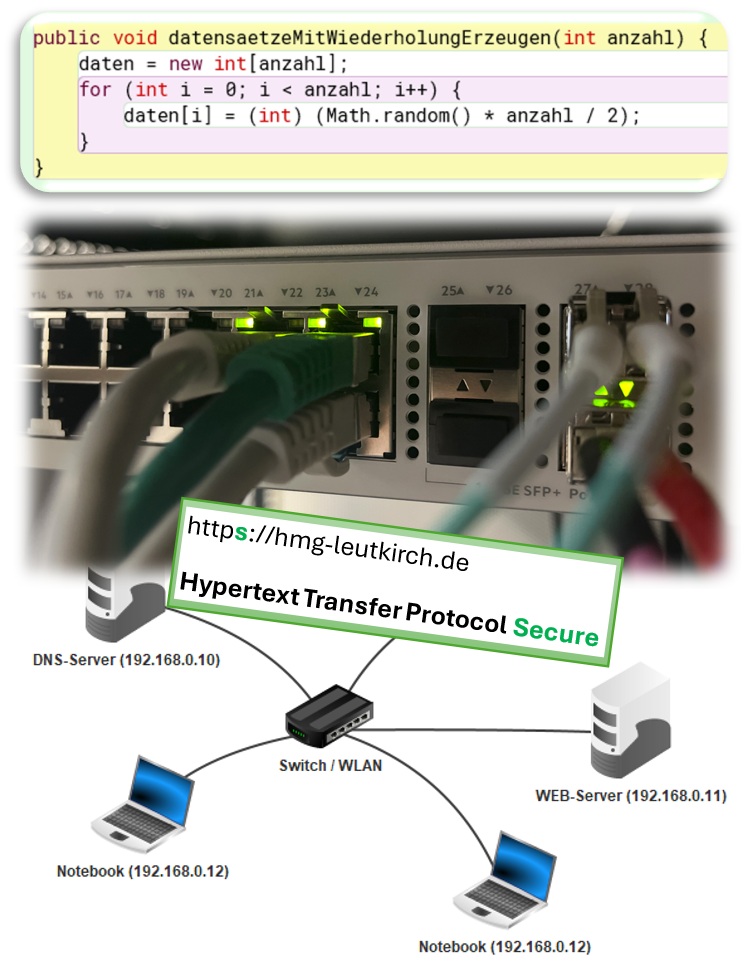 In Klasse 5/6 starten wir in Medienbildung mit dem grundlegenden, verantwortungsvollen Umgang mit dem Computer oder Handy. Ab Klasse 7 fokussiert das Fach immer mehr auch auf den technischen Bereich. Ausgehend vom Programmieren von Computerspielen mit einfachen Sprachen wie scratch hin zu komplexeren Programmen oder der Roboterprogrammierung mit allgemein verwendeten Sprachen wie Java oder C++. Ferner sind Verschlüsselungsmethoden und der Umgang mit und die Funktion von Computernetzwerken wichtige Themen.